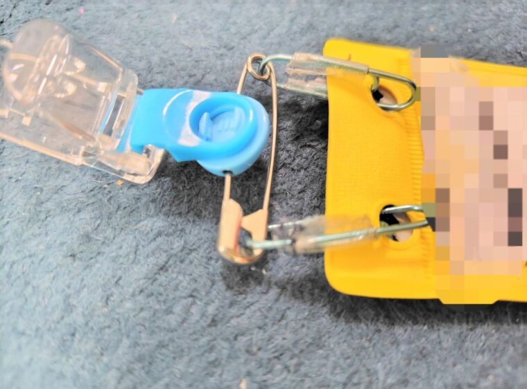試行錯誤して、安全ピンの両端にクリップをつけて安全ピンと名札を切り離して使用できるようにしました。