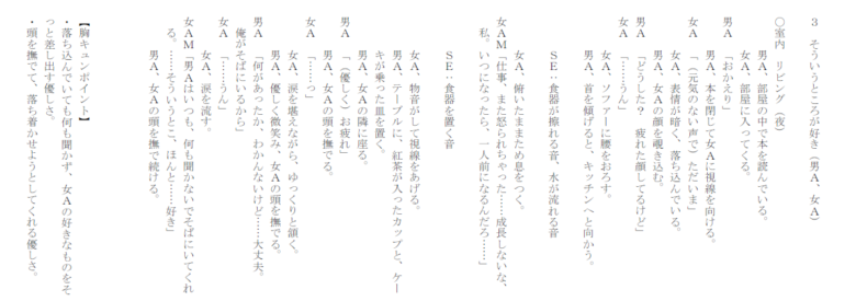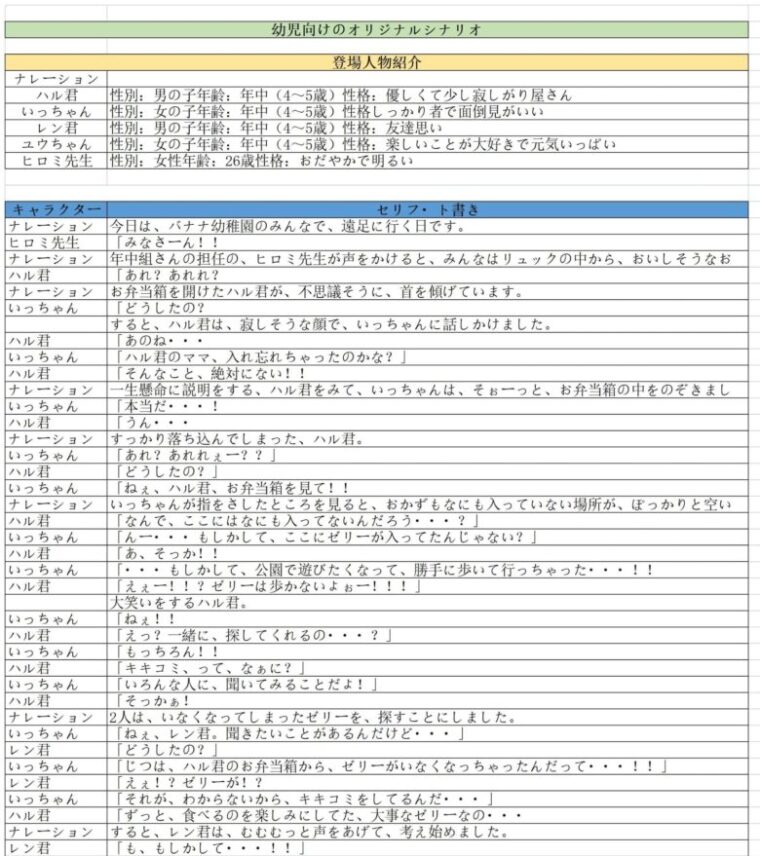 | 作業内容 シナリオ作成(キャラクター設定、セリフ作成、ト書き) |